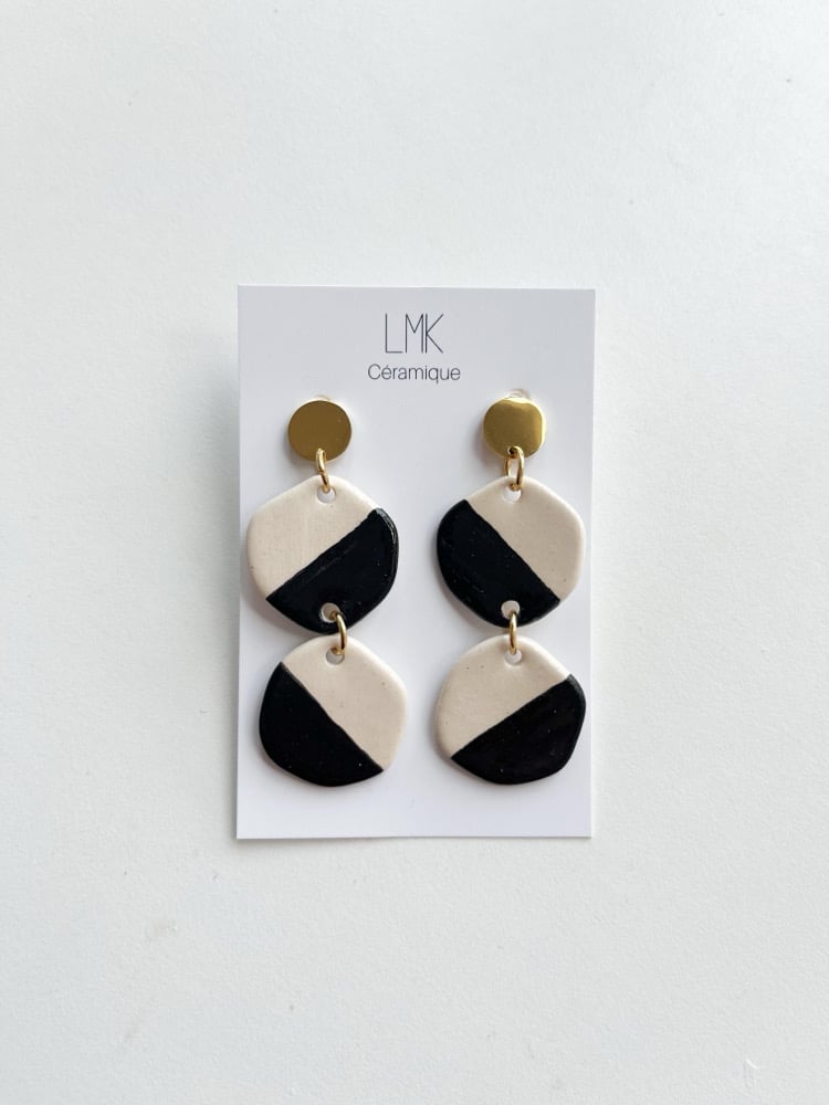 Paire de boucles d'oreilles en céramique réalisée artisanalement par mes soins, attaches en acier inoxydable couleur dorée d’1cm de diamètre.