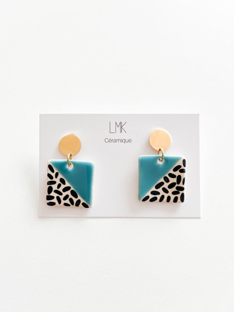 Paire de boucles d'oreilles céramique CARRA bleu iroise