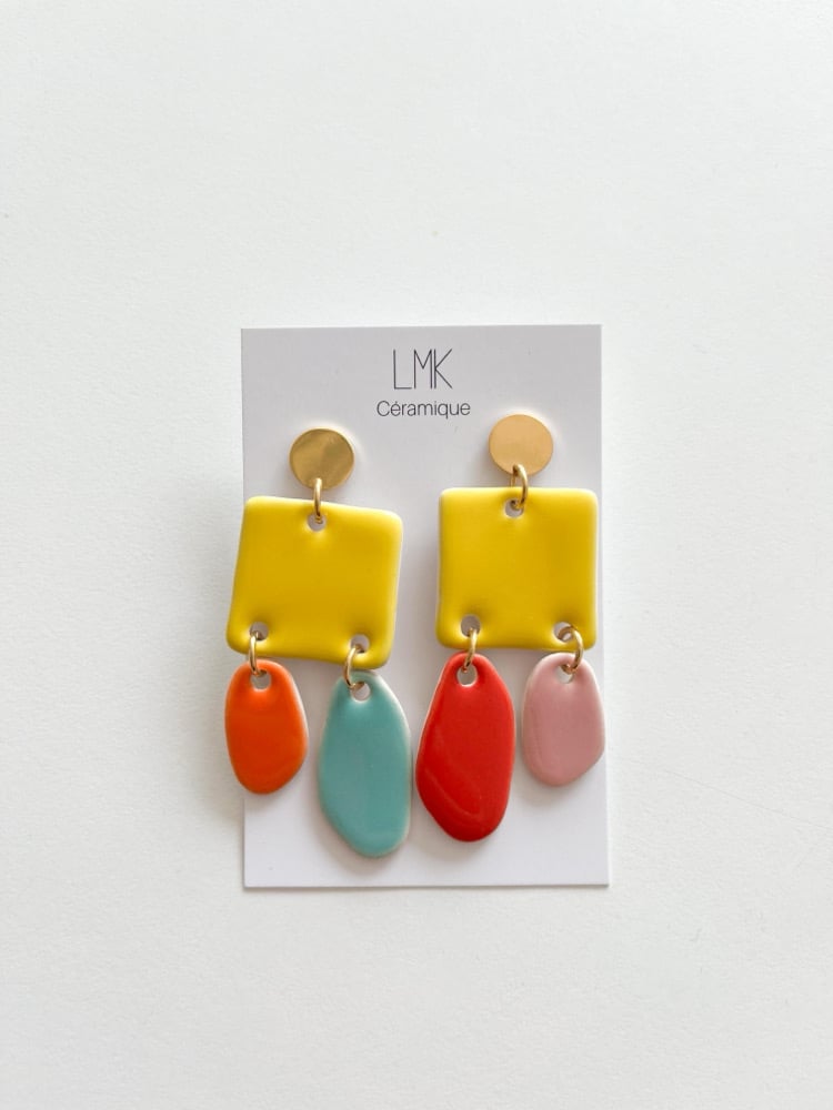 Paire de boucles d'oreilles en céramique réalisée artisanalement par mes soins, attaches en acier inoxydable couleur dorée d’1cm de diamètre.