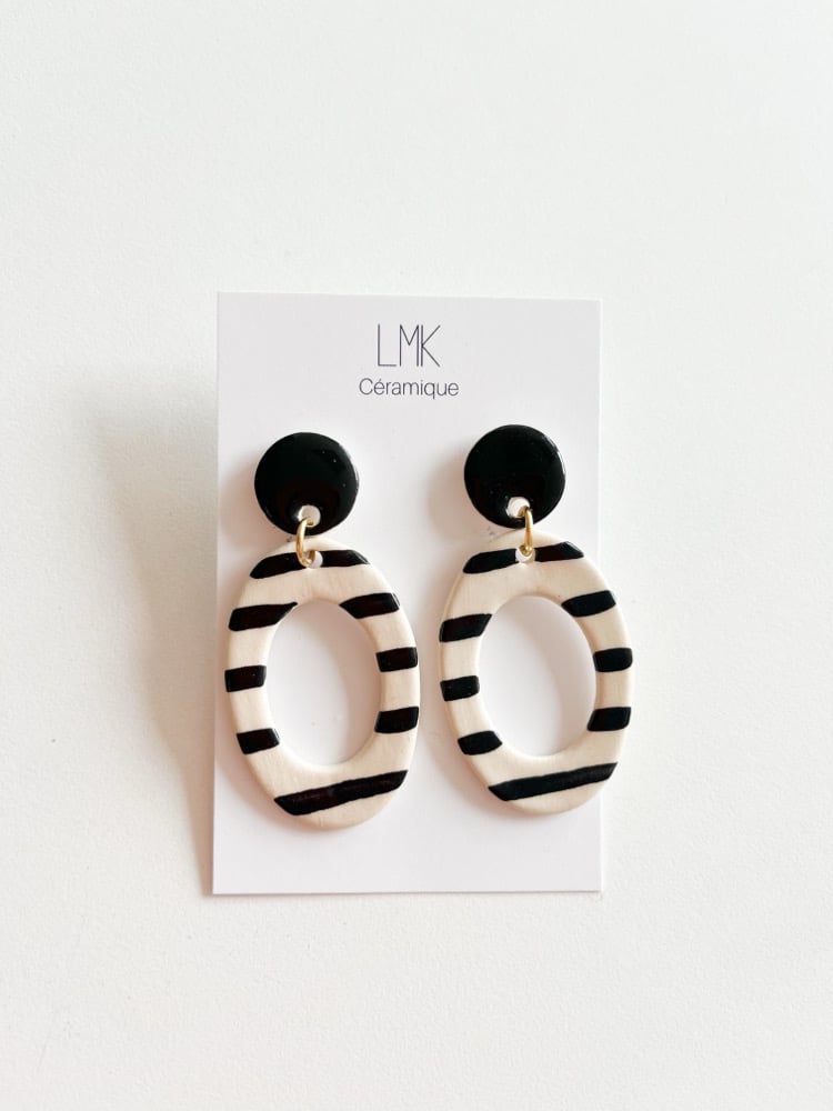 Paire de boucles d’oreilles céramique TOTEM OVALA PERCA noir